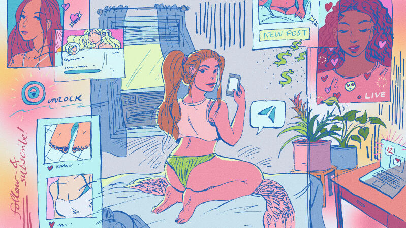 One of four illustrations for Vox Media "The Sexfluencers" written by Rebecca Jennings. 2021.